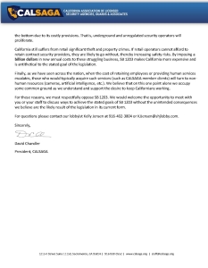 Last week Senator Lola Smallwood-Cuevas introduced SB1203. While SB 1203 is framed as a public safety measure, the bill imposes substantial new regulatory burdens that risk harming both security providers and the communities you serve.